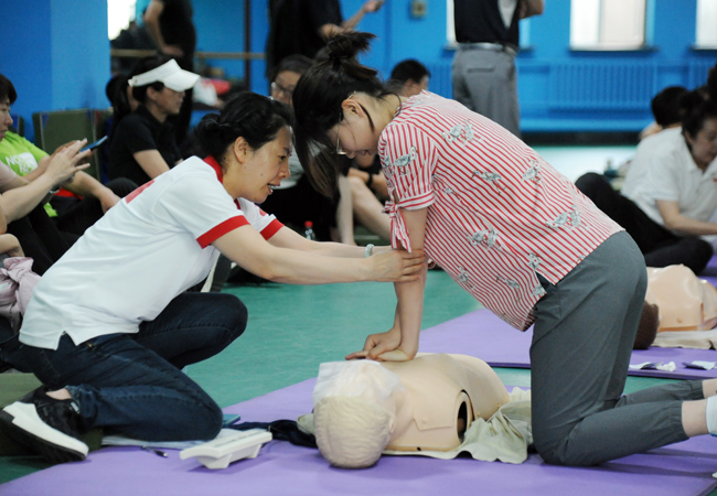 为普及应急救护知识,增强急救意识和急救能力,进一步加强体育教师专业技能,夏季小学期第一周tyc7111cc太阳成集团在一校区正心楼舞蹈室举办了首期红十字应急救护员培训班,培训包括理论学习、实操演练及考核三部分,培训课程由黑龙江省红十字协会谭志强、陈杰等老师主讲,tyc7111cc太阳成集团教职工、研究生参加了培训。