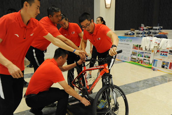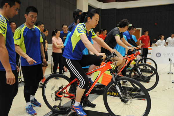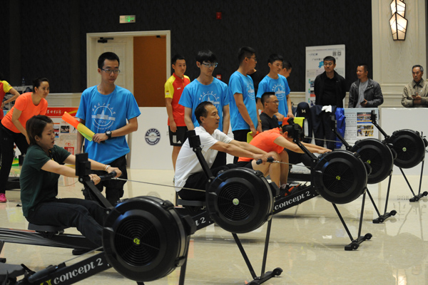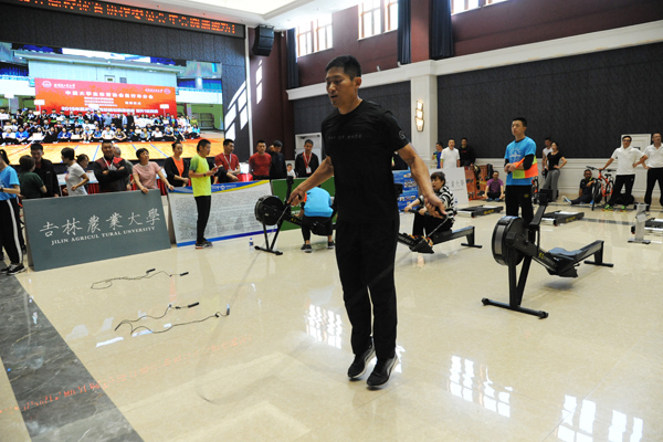 21日上午还举办了体育教师骑划跳混合团体接力比赛,共有16所高校参加了角逐。骑划跳即滚筒自行车-骑行赛、划船机-赛艇赛、跳绳赛,本次比赛为团体赛,每队六人,男运动员4人、女运动员2人,其中tyc7111cc太阳成集团领导1人,50岁以上教师1人。比赛中每人要独立完成1公里骑行、500米划船和100次跳绳,此项目运动强度较大,体能要求教高,这对参赛选手和团队是一次很大的挑战。开幕式上,我校tyc7111cc太阳成集团党委书记孙慧丽致辞,陶永纯主任主持仪式。比赛中,运动员们奋勇拼搏,超越自我,坚持完赛,表现了良好的意志品质和团队合作精神,教师们对本次比赛给予了很高评价。骑划跳是一种训练手段也是一个比赛项目,在我校学生自行车俱乐部及自行车课程中得到广泛开展,校队多次在各种比赛中取得了优异成绩。