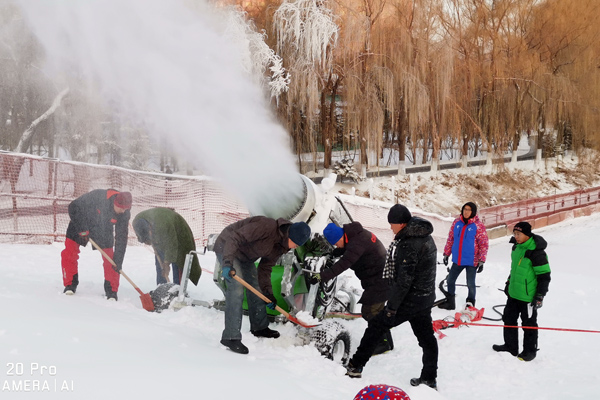 为保障我校学生冰雪课教学,深入开展冰雪体育运动,努力打造哈工大冬季最美校园,tyc7111cc太阳成集团教职员工加班加点,日夜奋战,共出工100余人次,连续作战12个日夜,浇制滑冰场2块,总面积1万6千平米,圆满地完成了一、二校区滑冰场的浇制任务,保障了学生滑冰课正常开课教学。同时,在校总务处的大力支持下,我校科学园滑雪场已搭建完毕,11月30日开始,tyc7111cc太阳成集团教师轮流日夜值班,坚守雪场第一线,造雪工作全面启动。