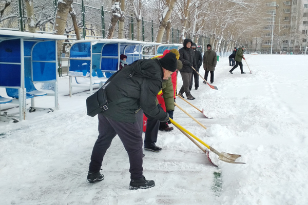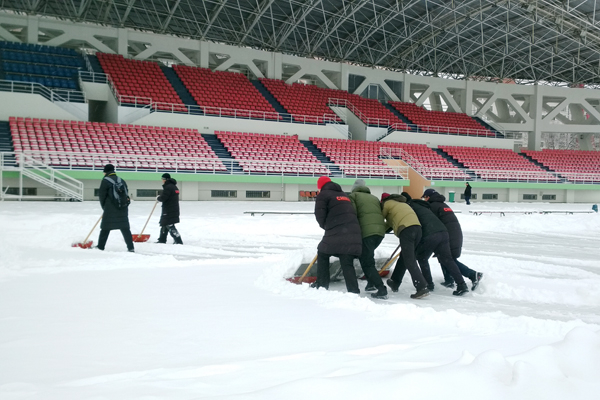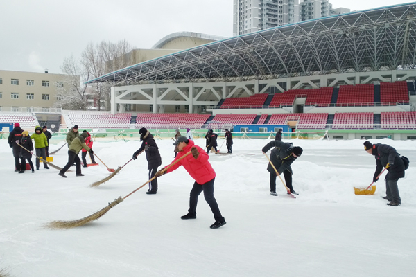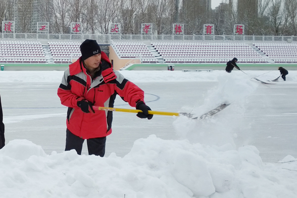 “忽如一夜瑞雪来,千树万树梨花开”,清晨的校园银装素裹,装点的分外妖娆,但一场大雪也给滑冰课教学和户外健身带来了不便。今天早8:00,tyc7111cc太阳成集团全体教职工按照以雪为令的布署,不辞辛劳,克服各种困难从家中准时赶到一校区体育场开始了清雪工作。他们不畏严寒,协同作战,推雪的推雪,扫冰的扫冰,经过近一个小时的奋战,把冰场所有跑道和教学区清扫的干干净净,随后转战小足球场,将跑道的雪清理完毕,保障了滑冰课教学和课余锻炼健身顺利进行。
