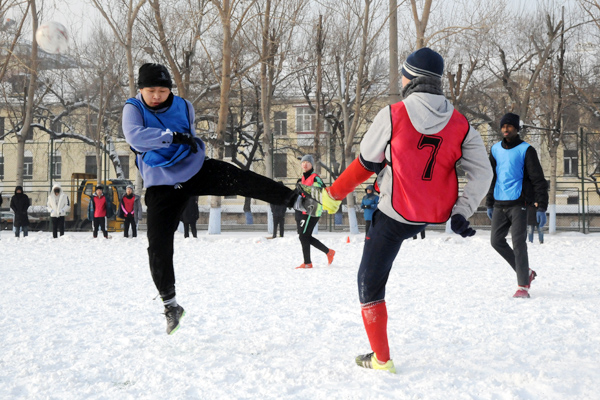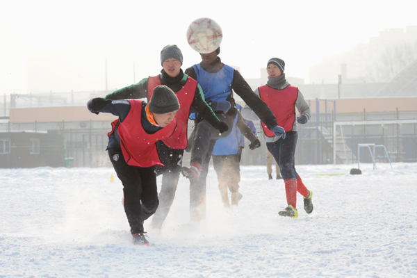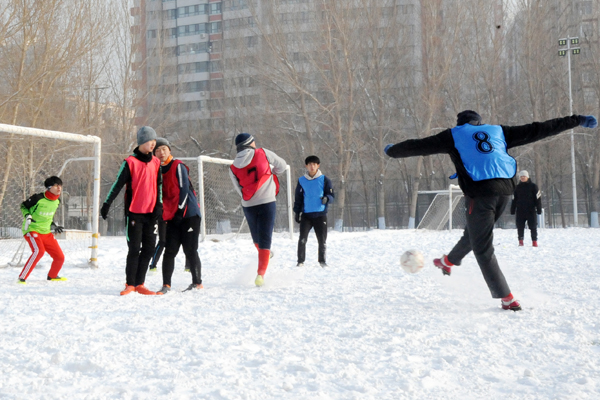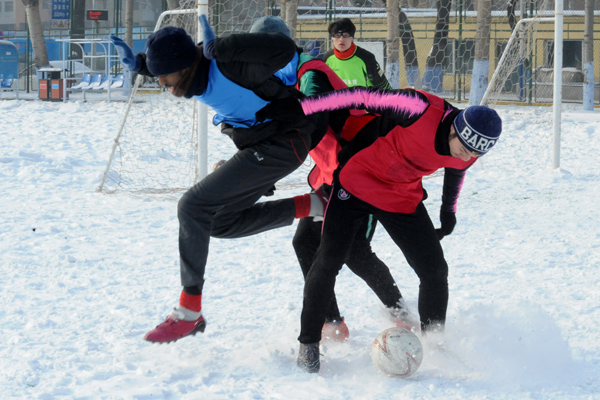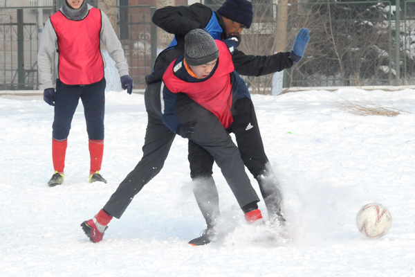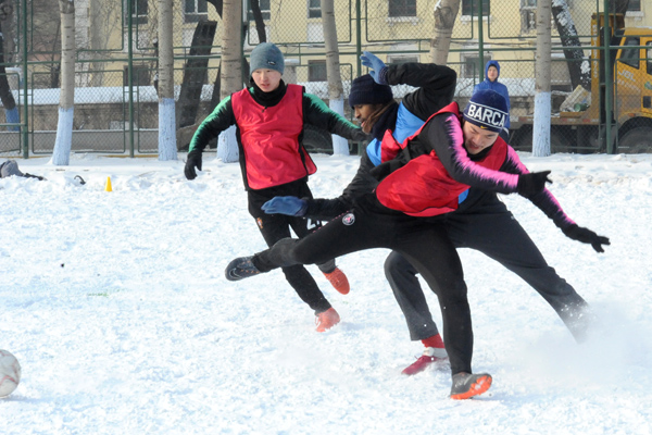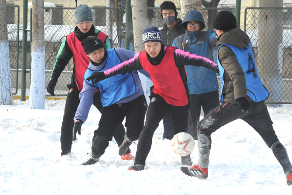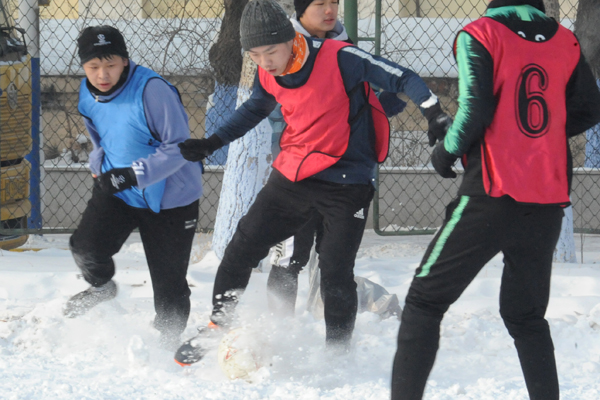 雪地足球赛是我校传统体育项目,是东北冬季户外特色体育活动,深受学生欢迎和喜爱,特别是今年的哈尔滨降雪量比较大,使同学们在皑皑白雪中享乐冰雪,放松心情,体验了足球竞技,舒缓了学习压力。本赛事采用五人制比赛规则,分为五人制和“3+2”(2名女生)两个组别。