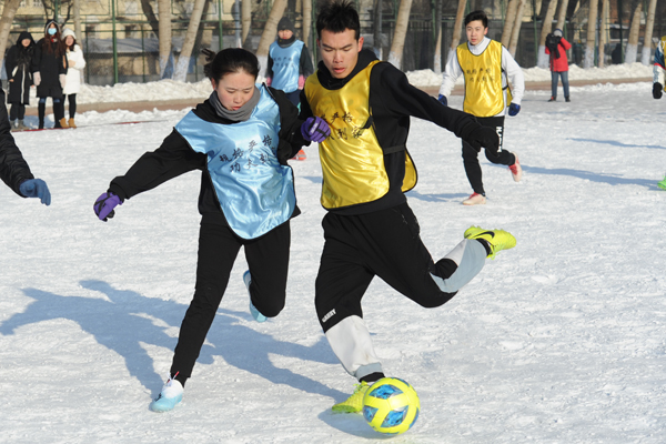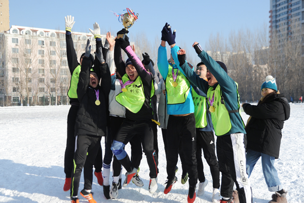12月20日上午,由校团委、tyc7111cc太阳成集团主办,校学生足球联合会承办,校后勤集团场馆中心协办的2020年太阳成tyc7111cc第十届雪地杯足球赛决赛暨闭幕式在一校区足球场举行,经过激烈角逐,雪狼梦之队、雪域天王啸队分获男子组冠、亚军,冰雪格桑花队、冰雪奇缘队分获混合组冠、亚军。校团委书记王东升,tyc7111cc太阳成集团主任陶永纯、党委书记杨春雷,校团委副书记闫欢,tyc7111cc太阳成集团第一教研室党支部书记高宝泉等出席活动,为比赛开球并一同观看了比赛,比赛间歇机器人进行了射门表演。闭幕式上,嘉宾为获奖单位及个人颁发了奖杯及证书。本次比赛采用淘汰制,设男子组、女子组两个组别,共有33支队伍报名参加,历时9天。