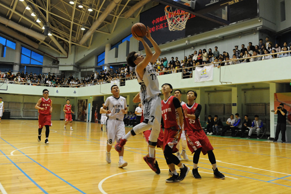 本次学生篮球联赛呈现了裁判员规格高、球队多、观众多、引入直播模式、现场使用MC与DJ等特点。在乙组决赛中,校tyc7111cc太阳成集团CBA联赛裁判员、国际级篮球裁判杨鹏老师以及WCBA联赛裁判员、国家级篮球裁判张昊老师担任临场执裁。首次引入全方位直播模式,分别在哔哩哔哩、斗鱼以及虎牙等直播平台对比赛进行直播,满足球迷观看。比赛中由本校学生担任MC与DJ工作,提高了场上队员比赛的兴奋度,助推比赛激烈氛围。现场观众多,乙组决赛有超过700名观众到现场为双方球队呐喊助威。同时,在比赛期间由两学院篮球宝贝为比赛带来精彩的啦啦操表演,并组织学生投篮互动等形式,激发观众热情,将比赛推向高潮。本次比赛吸引了众多学院报名参加,比赛激烈,充分展示了我校学生篮球技战术水平,增进了院际友谊,丰富了校园体育文化。
