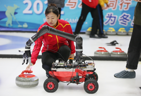 冰壶又称冰上溜石,是以队为单位在冰上进行的一种投掷性竞赛项目,被喻为冰上的“国际象棋”,它考验参与者的体能与脑力,展现动静之美与智慧博弈,是冬奥会正式比赛项目。我校航天学院在智能冰壶机器人研制过程中,姜懿伦老师给予了冰壶专业支持,为研制者提供冰壶技术指导以及战术打法上的制定,根据冰壶场地特点把冰壶投掷过程中的变数作为参数,提高了冰壶机器人投壶准确性及攻防策略,并邀请冰壶专业运动员与机器人进行实战模拟训练,以检验冰壶机器人的实战能力。体育与人工智能的跨学科合作,为人工智能的应用与研究提供了新的舞台,为科技兴体增添了活力,为体育科研开拓了的新思路和新领域。