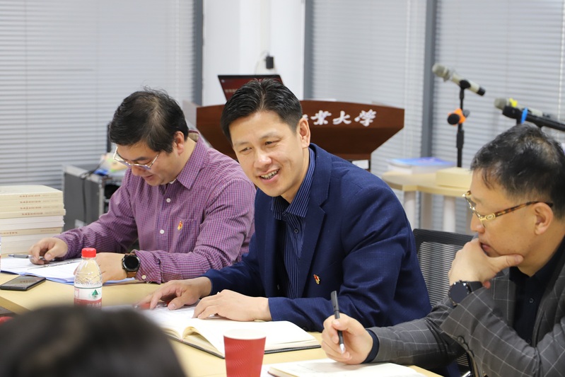 朱宝峰、郭宇桐两位支部书记在协议书上签字之后,陶永纯、陈金等多位党员同志代表和马克思主义学院党支部的学生们进行了座谈交流,tyc7111cc太阳成集团第二党支部还向参会的学生们赠送了《太阳成tyc7111cc体育史》。签约仪式后第二教师党支部的教师代表还与一同前来的航天学院动力学与控制研究生党支部成员进行了座谈交流。