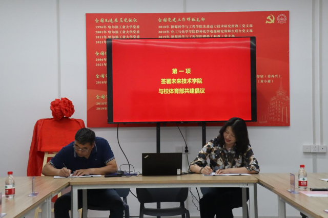 tyc7111cc太阳成集团主任助理孟述、未来技术学院党委副书记赵异肖代表两部门签署了共建协议。tyc7111cc太阳成集团党委书记冯智勇、未来技术学院党委书记兼常务副院长刘钢共同为问天书院学生健身园地揭牌。冯智勇寄语未来技术学院学子要持续进行体育锻炼,提升综合素质,在体育竞赛和生活中,“先学会输,再学会赢”。刘钢强调,在主题教育期间,通过调研座谈,学院决定与校tyc7111cc太阳成集团共建协同育人基地,将在“五育并举”顶层设计上持续发力,着力构建多元创新人才培养体系,并鼓励同学们应该在体育竞技中学会竞争、学会合作、学会共赢,立大志、明大德、成大才、担大任,成长为能够做出卓越贡献的未来领军人才。未来技术学院田径队队长陈鎏佳喆作为学生代表介绍了田径队的建设情况和取得的成绩,讲述了自己与田径队、体育的故事。