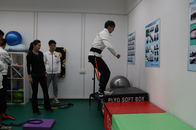 会后,全体人员参观了问天书院健身园地,tyc7111cc太阳成集团健身指导教师刘松带领学生代表体验了各器材。