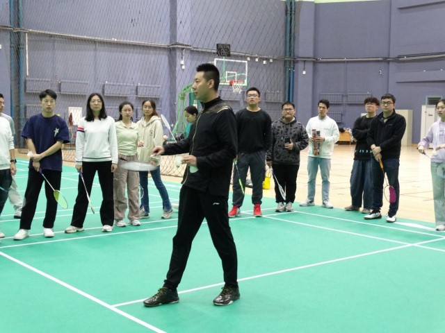 午餐会后,陈金老师带领同学们来到羽毛球场,对发球姿势、击球动作等现场教学,并和同学们展开羽毛球友谊赛。比赛期间陈金老师向大家展示了强有力的扣球、假动作反扑、贴网球的轻挑等技巧,同学们都收获满满。