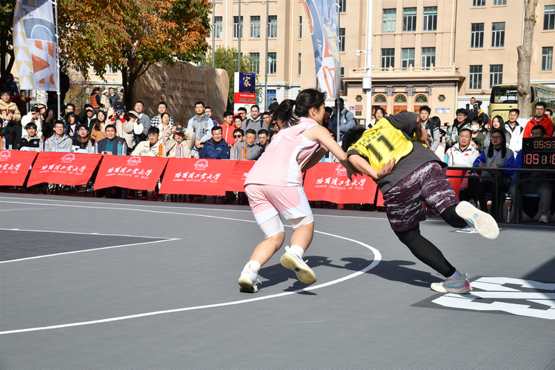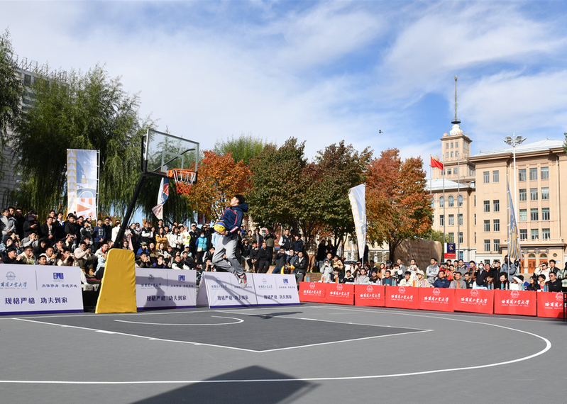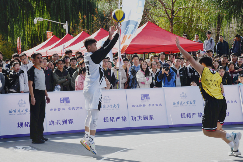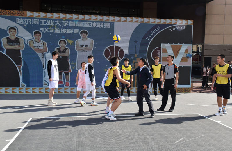 金秋时节,作为全新打造的校园体育赛事,哈工大首届3X3篮球联赛火热开赛。10月18日,揭幕战在一校区图书馆门前举行,吸引了众多师生驻足观看。副校长沈毅出席并为揭幕战开球。
