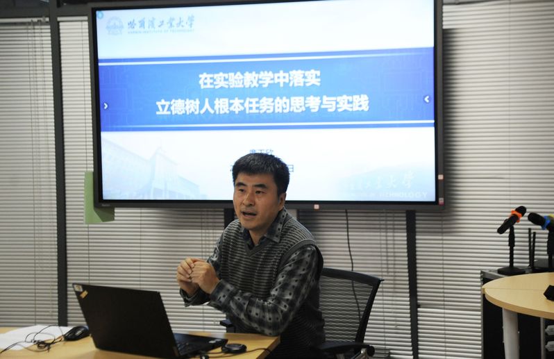 报告中介绍了“贺信精神引领三全育人实践”的课程思政育人体系,在实验教学中,充分做好顶层设计和协同育人机制,通过融入哈工大“八百壮士”精神、航天精神、工匠精神、科学家精神等思政元素进行全员育人和实践育人,激发学生科技报国的家国情怀和使命担当。在研讨中大家进行了广泛交流,廉老师说自己非常喜爱体育运动,特别是足球和羽毛球项目,不仅能够享受运动的快乐,还能有效的缓解工作压力,增进身心健康,保证以良好的精神状态更好地投入到工作中去,坚持体育锻炼受益终身。他说实验教学和体育教学有些相似,师生之间面对面沟通交流的机会更多一些,教师要多关注学生的学习状态,关爱学生的健康成长,做学生的良师益友。