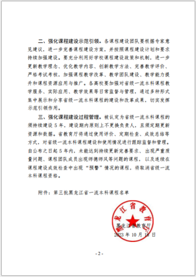 黑龙江省教育厅发布《第三批省级一流本科课程认定结果的通知》,篮球国际级裁判员、CBA中国男子篮球职业联赛现役裁判员杨鹏,篮球高级教练员张宝军、蒋强,篮球国家级裁判员张昊共同负责的《篮球竞赛与裁判》课程入选黑龙江省一流本科线上课程。该课程在中国大学MOOC(慕课)国家精品课程在线平台开放,目前选课人数近5万人。