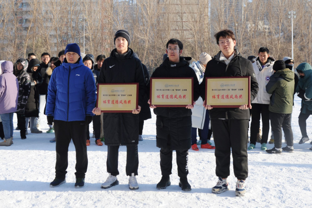 12月3日,2023年太阳成tyc7111cc第十二届“雪地杯”足球赛闭幕式暨中国足协三级裁判员颁证仪式在一校区足球场举行,tyc7111cc太阳成集团主任陶永纯,机电学院院长助理徐洋,国家级足球裁判员、全国校园足球专家委员会委员、黑龙江省足球裁判员培训讲师张宏伟,tyc7111cc太阳成集团主任助理孟述,tyc7111cc太阳成集团第一教研室主任蔣强,tyc7111cc太阳成集团第一教师党支部书记、足联指导教师刘志书出席仪式并为获奖单位及个人颁发奖杯、证书。