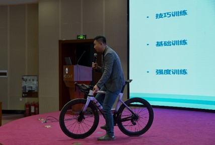 随后,计指导向大家讲解专业骑行知识,为大家答疑。骑行安全,是计成指导谈到的第一个话题。“无论是职业选手们还是业余的骑行爱好者,我们首先要明确一点:不管出门骑车是为了训练收获,还是单纯地享受快乐,最最重要的一点就是安全第一”。除此之外分别从自行车日常检查、骑行训练、骑行恢复以及专业自行车比赛经历进行介绍。