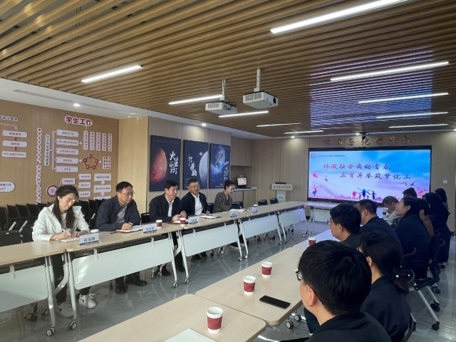 为深化体教融合,进一步促进校园体育文化建设,不断提升服务我校师生体质健康能力与水平,4月25日下午,tyc7111cc太阳成集团党委书记冯智勇、主任陶永纯、副主任张宝军等一行五人赴化工与化学学院围绕“体教融合舞动青春,五育并举筑梦化工”为题,共谋体教融合发展之路,请领服务师生健康任务。