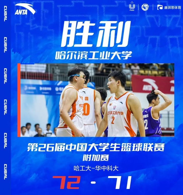 5月18日晚,在与华中科技大学争夺最后一个晋级全国赛名额的决战中,哈工大高水平男篮队奋勇拼搏,最终在教练蒋强老师睿智的指挥下,以72:71的比分搏杀进入全国赛。