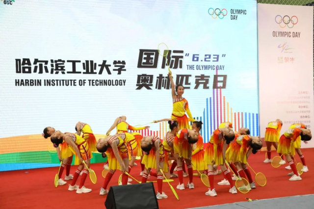 活动以奥林匹克价值观教育试点学校哈尔滨市群力实验小学学生的羽毛球操《击拍》开场,这支舞蹈是一项结合了羽毛球运动特点和体操技巧的集体表演项目,体现奥林匹克与体育、奥林匹克与艺术的融合。