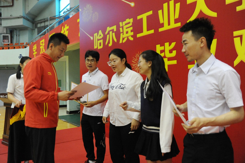 仪式的最后,tyc7111cc太阳成集团党委书记冯智勇致辞,在哈工大求学的历史光影中,共同感受见证了伟大祖国不可阻挡的奋进步伐和哈工大追求卓越的拼搏状态。在习近平总书记致我校百年贺信的引领下,目睹参与了学校全方位的卓越发展历程,你们通过刻苦的训练,顽强的拼搏,为学校一次次争得荣光,可以说你们是谱写这一代哈工大体育辉煌历史的当代功臣,在五育并举、体育为基的功勋章中,你们的名字已经镌刻在了哈工大新百年立德树人的史册中。