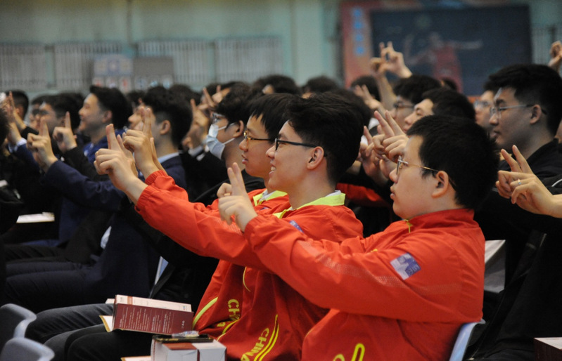同时,陶永纯主任现场教授了哈工大体育人独有手势并讲述了其深刻含义,叮嘱即将毕业的运动员,时刻谨 记哈工大体育人不畏艰难的奋斗精神和激流勇进的拼搏精神。