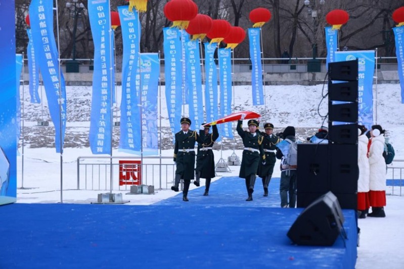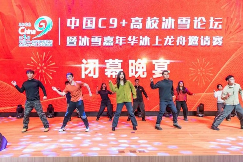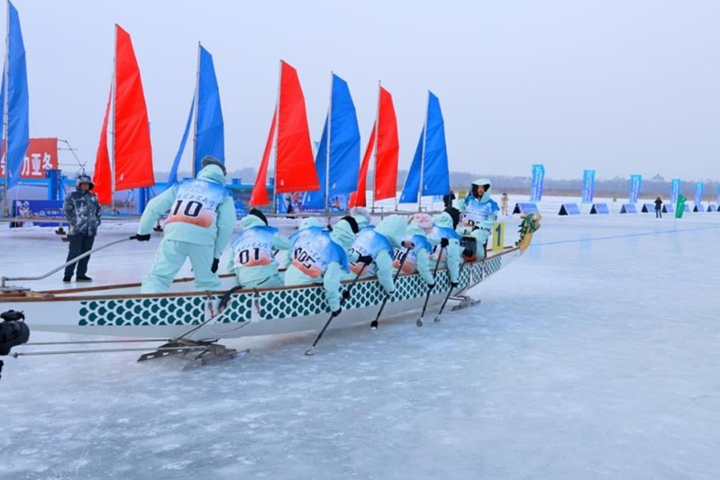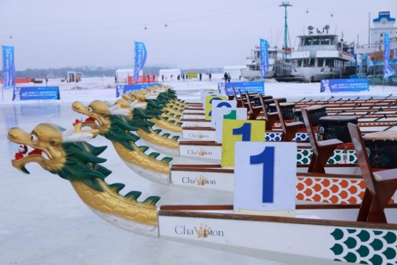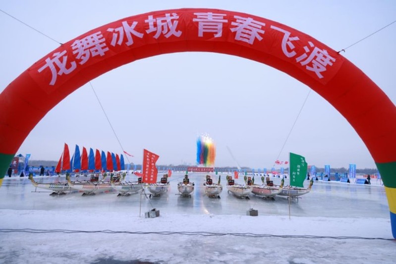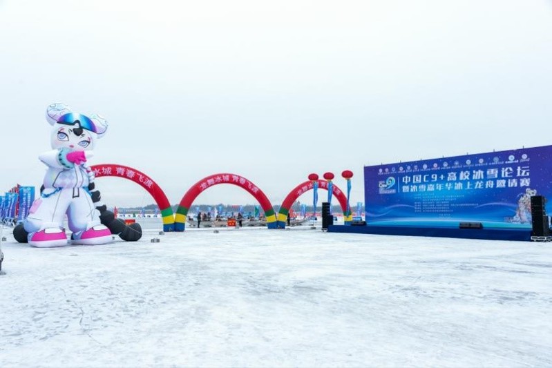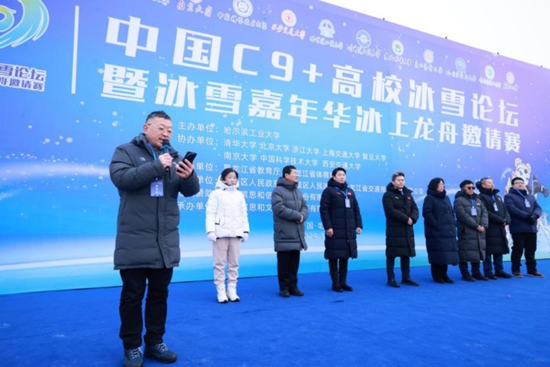 12月28日,第三届中国C9+高校冰雪论坛暨冰雪嘉年华冰上龙舟邀请赛在哈尔滨市松花江面盛大开赛。