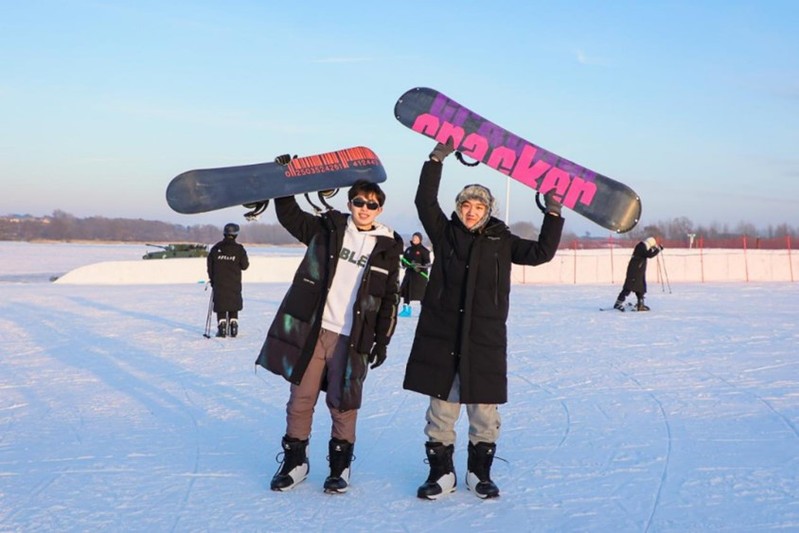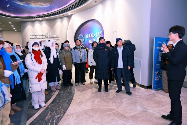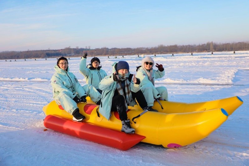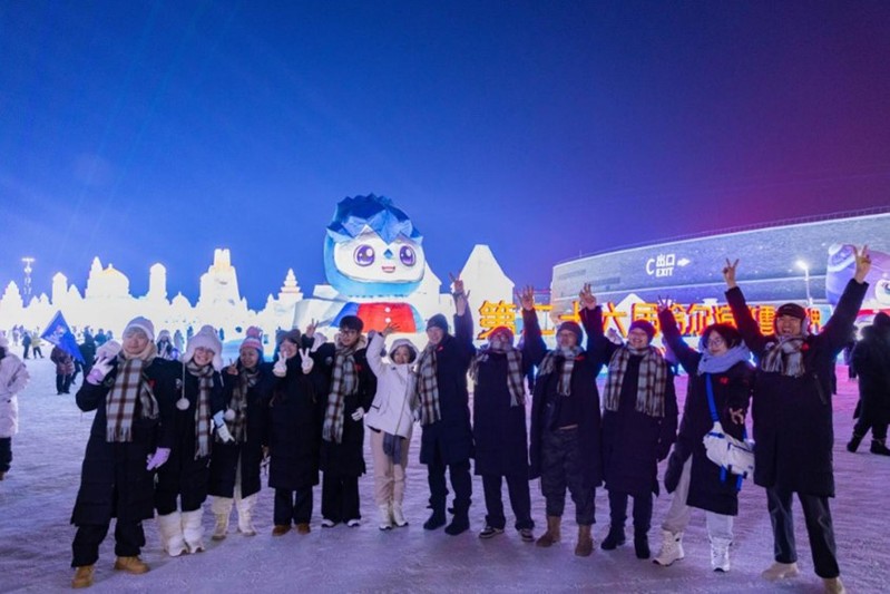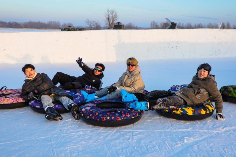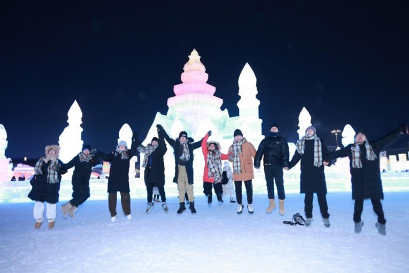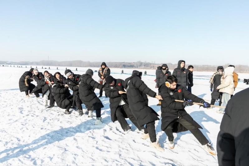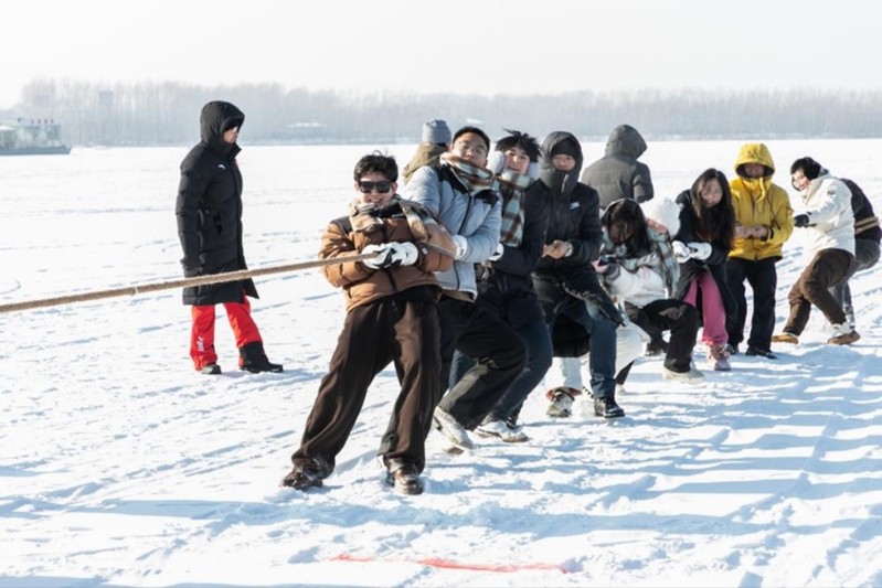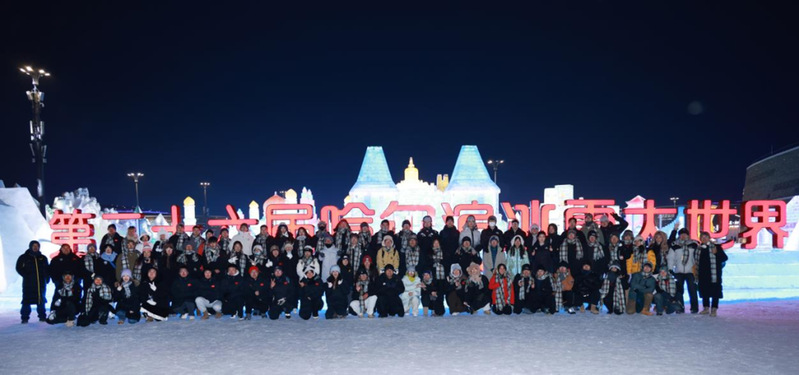 12月29日下午,各参赛高校师生在哈尔滨运粮河谷营地公园体验梦幻冰雪,感受冰情雪韵。
