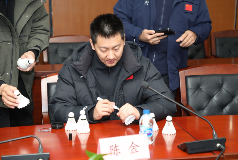 活动最后,陈金教授来到学校体育馆,为建平中学羽毛球队的学生示范讲解反手发网前球、正手高远球、正手吊球等基本技术要领,并与校队成员进行了双打比赛。在轻松愉快的氛围中,世界冠军的专业素养与师者风范给在场师生留下了深刻印象。活动最后,陈金教授为参与活动的同学们签名留念,以此勉励同学们继续追逐梦想。