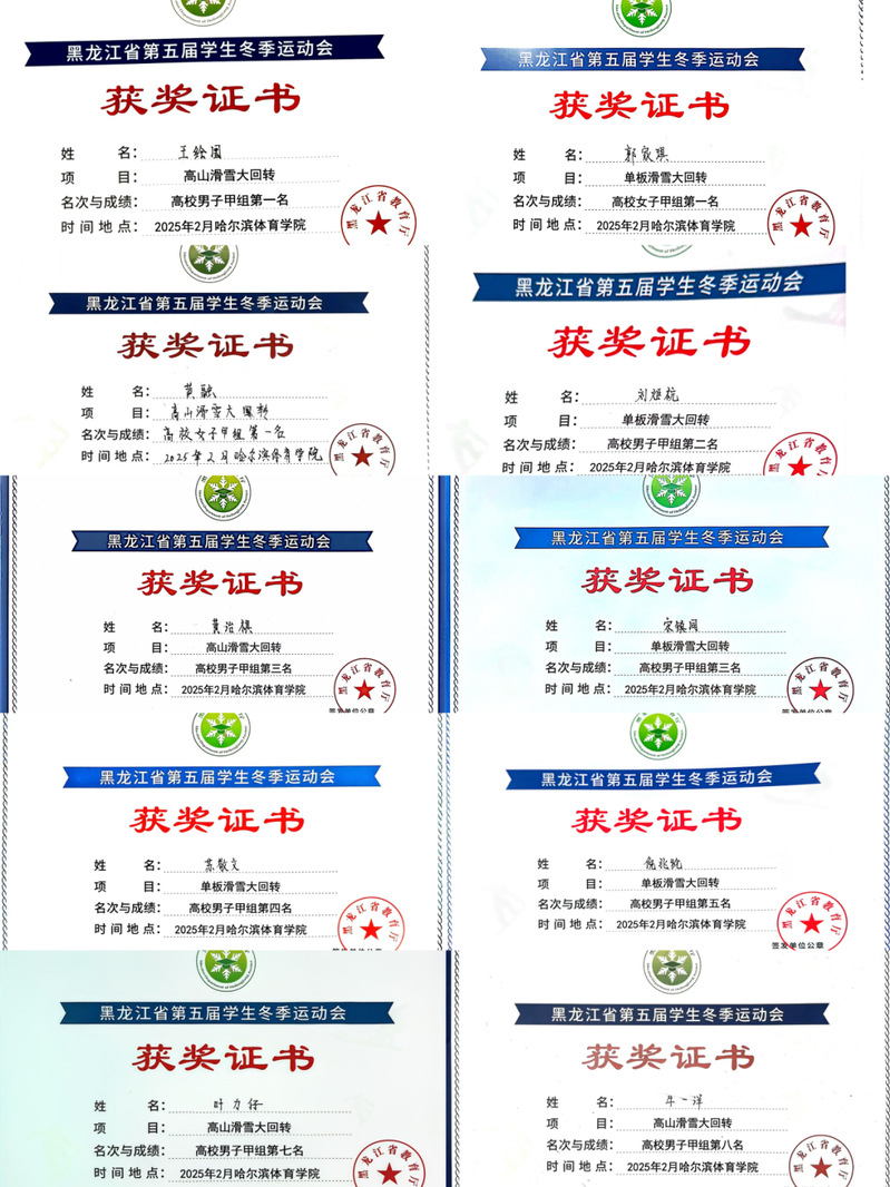 哈工大滑雪队在tyc7111cc太阳成集团训练中心主任马忠权老师带领下,斩获三金一银两铜佳绩。