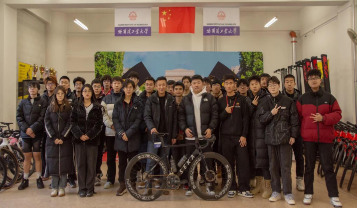 专注自我提升的同时,我更是在tyc7111cc太阳成集团孟述老师的指引下,将格局放大,将目光放远,试图将自行车文化传播至整个校园乃至黑龙江省。在校内,我们师生同心,夏天积极组织同学们脚踩单车踏过哈尔滨的每一处景点,而在冬天则试图通过设置自行车定台来帮助自行车爱好者抗过北方的严寒,并且设置比赛来充分调动同学们对于自行车运动的热情。2021年至今,我们已经成功设立了一处室内自行车运动场馆,并成功举办了“仪器杯”与“能源杯”两大学生室内骑划挑战赛,吸引了各个学院总计超过三百位同学的积极参与。不仅如此,我们还是每年校运会最为抢眼的方阵,当一辆辆自行车在观众眼前呼啸而过总是能够引得一阵欢呼,更值得一提的是,自行车协会更是有幸于十一国庆在哈工大的升旗仪式之上一展我们的风采,一同为祖国母亲庆生。