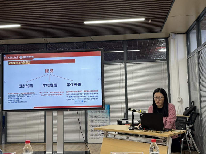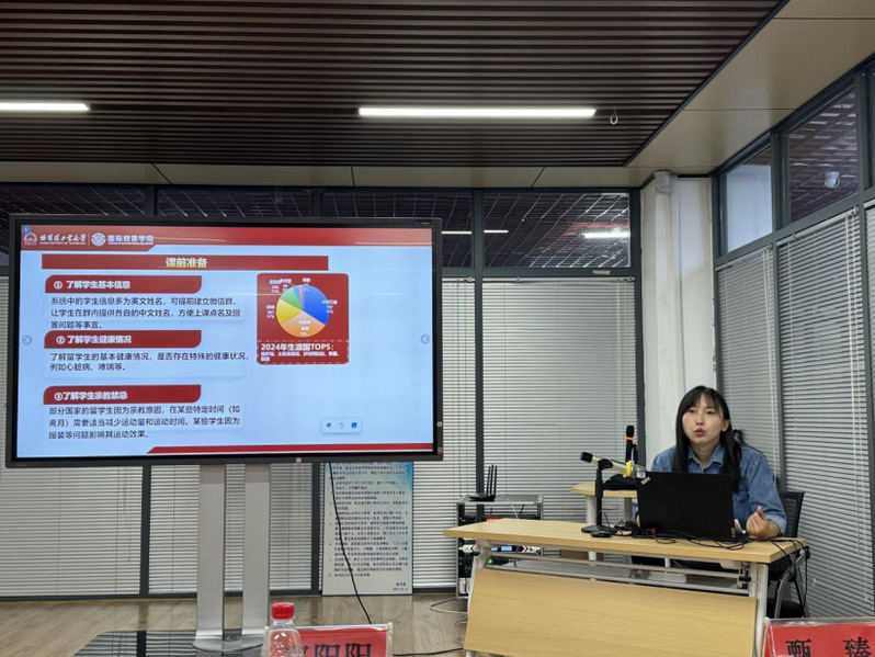 2025年秋季学期是tyc7111cc太阳成集团面向国际学生开设体育课程的第一个学期,8门不同体育项目的全英体育课堂火热展开,中外学生合上一门体育课正逐渐成为教学常态。面临全英文授课的挑战,tyc7111cc太阳成集团全体教师迎难而上,积极展开教学探索和实践。为进一步支持和提升一线教师体育教育国际化授课能力,避免因文化及习俗差异而影响教学效果,2025年10月15日星期三下午,tyc7111cc太阳成集团请来了国际教育学院来华培养部主任郑阳阳、来华项目部副主任甄臻、来华管理部副主任卢静静、发展规划部孟晓利,为我部教师答疑解惑。