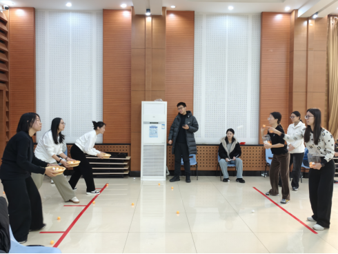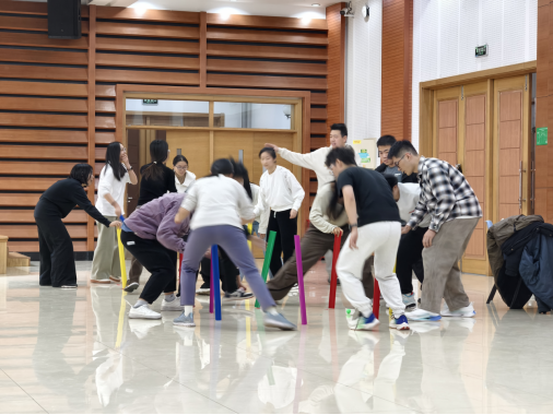 本次竞赛设置五大主题单元,全方位考验参赛队员的综合素养。综合运动技能比拼、定点投掷技巧比拼、团队配合能力比拼、健康与体育知识问答四个竞赛环节依次展开,青年风采展示环节作为加分项为赛事增色。在一号场地的综合运动技能比拼中,各队通过“公鸡下蛋”“珠行万里”“不倒森林”三个接力项目,展现了出色的协作能力与运动活力;二号场地的定点投掷环节,队员们精准配合,在限时内完成投接挑战;三号场地的团队配合比拼中,队员们接力翻牌、默契配对,高效完成任务;健康与体育知识问答环节则将党建党史、传统文化等知识融入竞技,参赛队员以螃蟹姿势接力答题,既考验知识储备,又增添了赛事趣味性。竞赛过程中,队员们相互协作、奋勇争先,现场掌声与欢呼声此起彼伏。