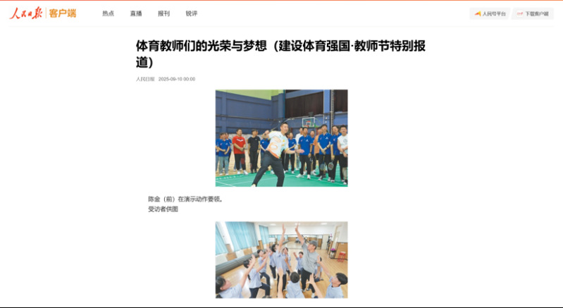 积极践行社会责任,开展多元化公益服务活动,传递体育正能量。陈金老师赴基层小学举办公益体育公开课,让乡村学生感受体育快乐与价值;参与央视《冠军说》节目录制及国家安全日主题宣传片拍摄,推动体育精神与主流价值深度融合,相关工作获新华社、《人民日报》专题报道,扩大体育文化社会影响力。