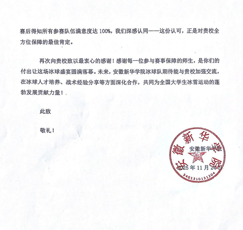 六所高校参赛队伍在赛场全力竞逐的同时,更以多元方式传递对赛事的珍视。清华大学队长直言:“专业赛事平台让我们延续亚冬激情,每一场对决都是成长的深刻印记。”多支队伍不仅提交感谢信,点赞赛事“严谨与温度并存”,更带来地方特色饮品得莫利小米布扎——地道风味为赛事注入温情,让校际间的认可与感恩更显真挚,也让赛事成为联结高校情感的纽带。